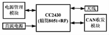 无线监测网关模块在设计上与无线监测路由模块类似,增加CAN收发模块,仍采用具有较强的信息处理和通信功能的主控制芯片CC2530(或CC2430),通过无线传感网络和CAN收发模块将收集数据传送至工业以太网,如图2所示。