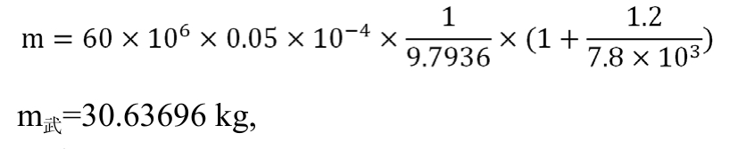 计算要在活塞有效面积0.05cm2产生60MPa压力值时所需钢材料砝码质量:(武汉重力加速度g=9.7936 m/s2