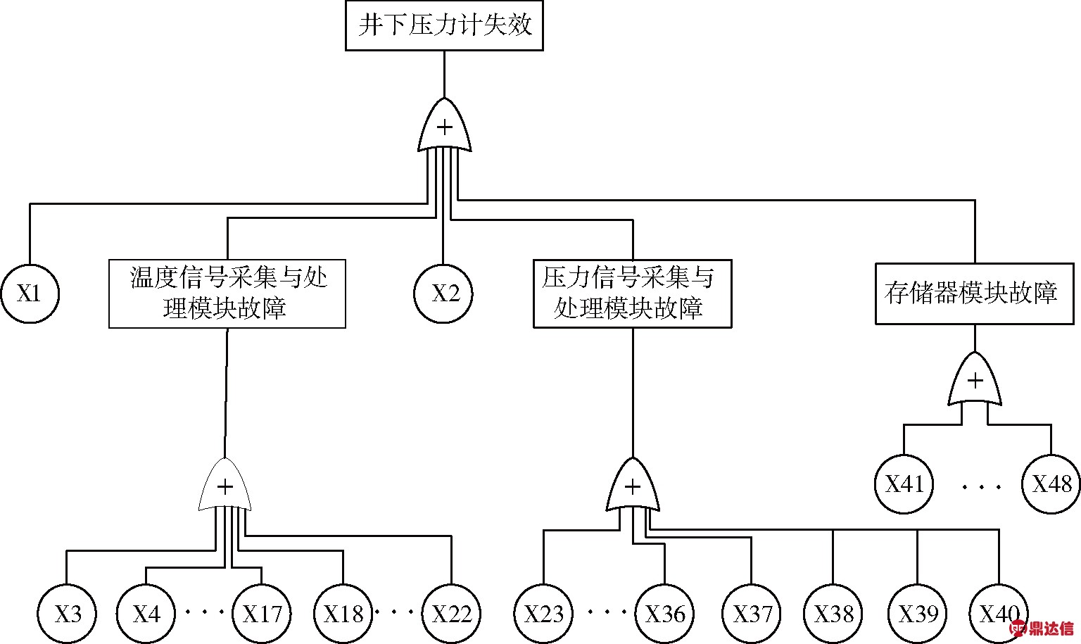 图1 井下压力计电子系统故障树模型
