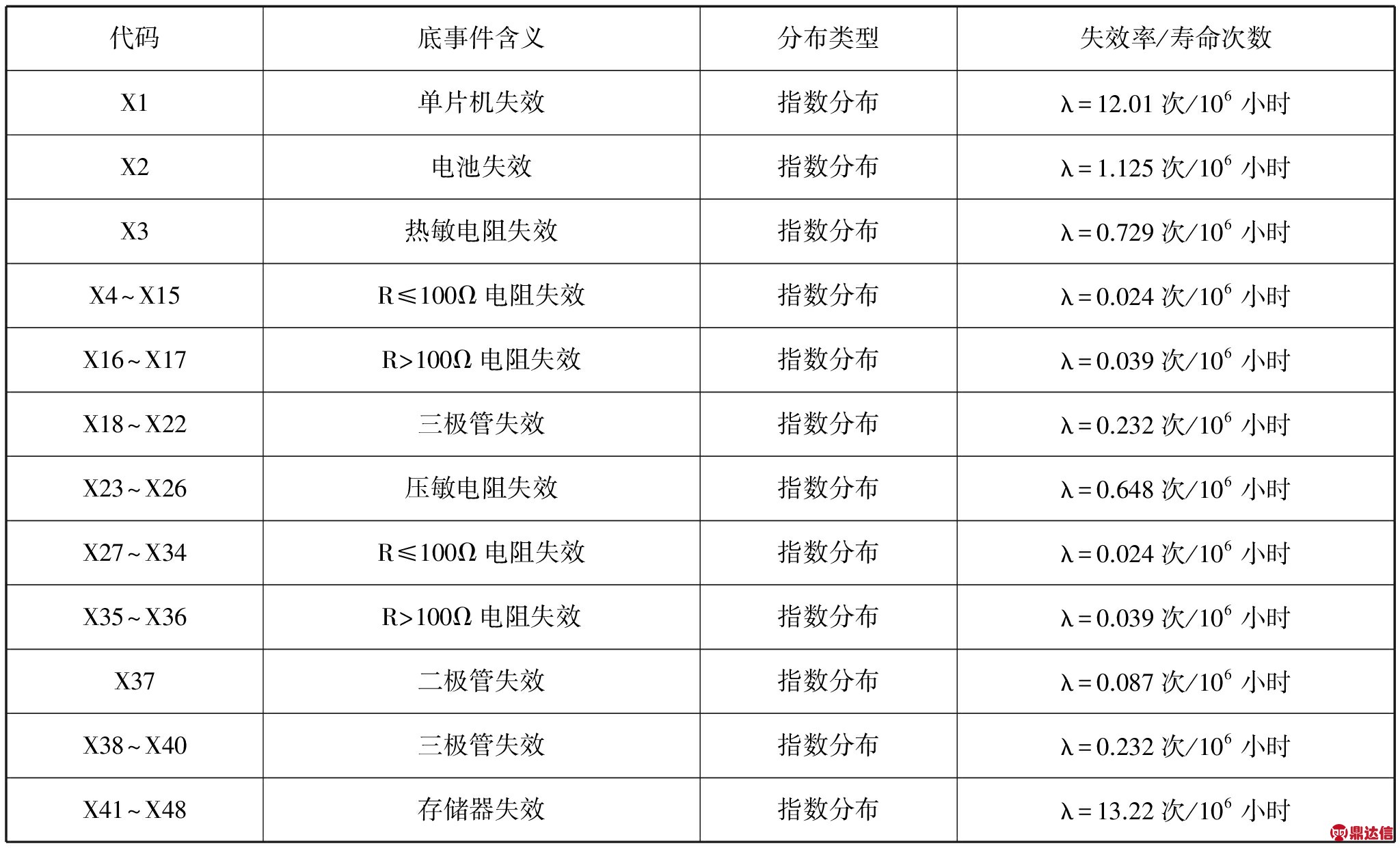 图1中故障树底事件对应元器件的失效特征参数都是由《GJB/Z 299C-2006》中的可靠性预计模型及失效参数计算得来[2]。具体失效率如表1所示。