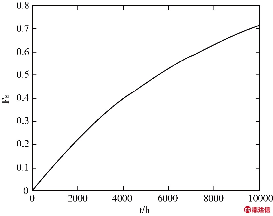 根据仿真的各项数据,再由公式(2)得到系统的累计失效率(不可靠度)曲线,如图3所示[6]。