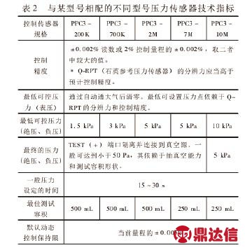 当前,数字压力计大多都带有自动控制功能,在带有自动控制功能中,无论是控制原理、控制方式还是控制计量性能均存在非常大的差别,其中值得注意的一点是数字压力计往往会受到控制技术指标的影响与限制,需要引起人们的关注与重视[3]。其中在表2中作者分析某一家公司所生产的数字压力控制器的相关技术指标,其中这一系列的指标在整个分析评定过程中往往需要对不确定度加以考虑与分析,如果默认动态控制保持限是量程的5%,那么这一保持限是无法改变的,并且也会导致自身控制能力受到影响。