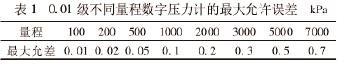 根据对表1的分析可以了解到,数字压力计等级为0.01级,量程7 000kPa的最大允许差是量程100kPa的80倍。