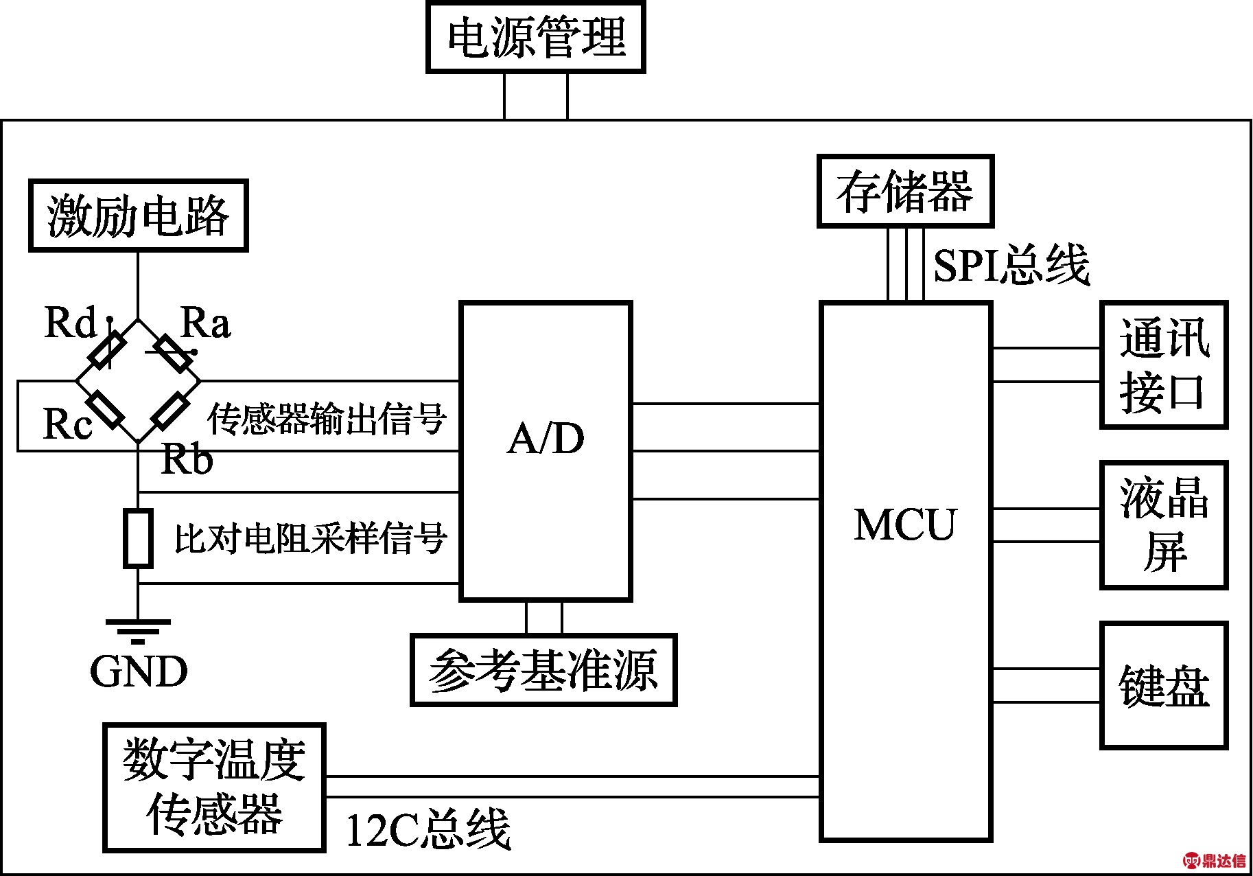 温度测量是本次研究的另一项关键技术点,在氢冷电机气密封性检验中,现场环境温度的变化由于季节不同超过了50℃,温度范围在10~60℃之间。在本次氢冷电机气密封性检验的设计中,为了减少温度的影响,要求温度测量的准确度应达到0.5℃,24h稳定性应不超过0.1℃。根据要求本研究选用了集成电路温度传感器。集成电路温度传感器具有体积小、响应时间短、准确度高及成本低等特点,该传感器被安装在绝压传感器的表面,这样可以直接测量氢冷电机内部的温度,更好地去处理环境温度变化的影响。