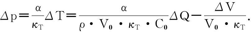 V0+ΔV=V0[1+αΔT-κTΔp],