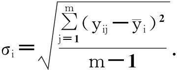 为各标定点响应量的平均值; i为标定点序号,i=1, 2,…, n; j为标定时重复测量次数,j=1,2,…, m; yij为各标定点的输出值.