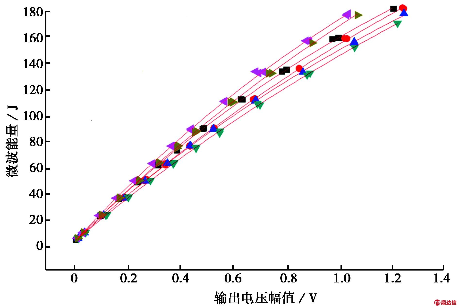 图6 注入微波能量与传感器输出电压关系