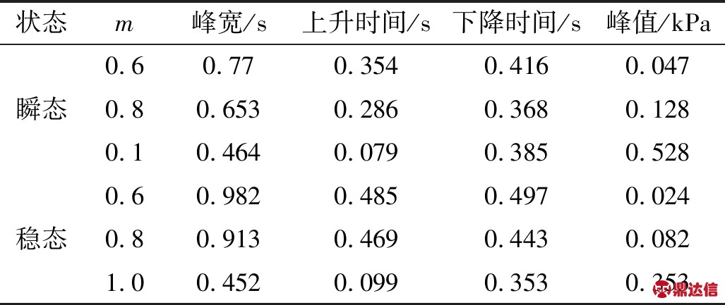 Tab.2 Contrast of transient and steady impact pressure characteristics at different frequencies