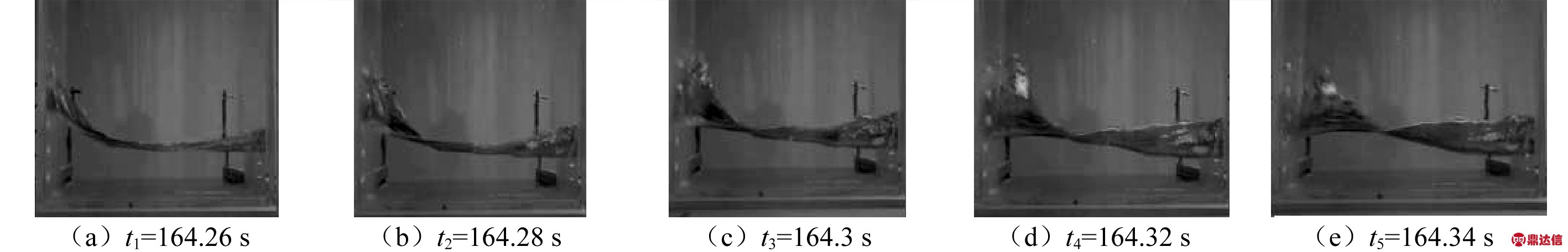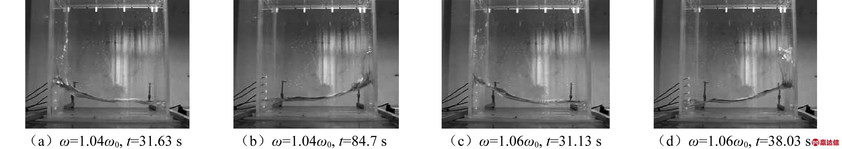 图5 晃荡波冲击液舱内壁时发生的破碎现象(A=5 mm)