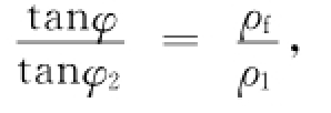 (2)式的第二项为在该通量管内电流由裂缝AB面流向CD面时裂缝内流体对该通量管内电流的电阻(在此设裂缝被电阻率等于地层电阻率ρ1的流体填充),用d R2表示.实际上在dφ内,d R2的大小与图3虚线所示部分的电阻是相等的.因为对同一通量管,虚线部分为垂直于电流密度线的柱侧面,该侧面也恰为AB或CD面通量管的等校截面,在该通量管内每一条电流密度线在裂缝AB面和CD面间的长度相同,也等于两虚线弧之间的距离,所以由虚线部分及轴线方向单位高度的扇环柱体与由AB和CD面及轴线方向单位高度的裂缝斜柱体(两柱体在同一电流通量管内)的电阻是相等的.则有