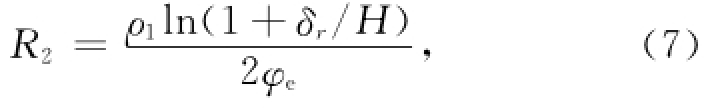 其中φe=tan-1[(ρ1/ρf)tanφe],该式积分需要用数2值计算方法计算积分.含有平面裂缝扇环状地层的横向电阻为