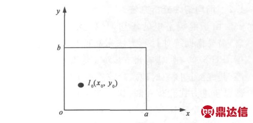 实际应用中的混响室,一般是通过其内部的源天线激励,构造电磁场环境,这相当于一个有源谐振腔。研究混响室内的搅拌原理,可以借助有源谐振腔内部的电磁场理论进行分析。下面以简单的二维有源矩形谐振腔为例进行研究,如图1所示。
