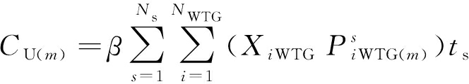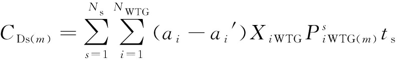 式中:CAM(m)和CDSM(m)分别为第m次模拟风机有功切除费用和可中断负荷中断费用;