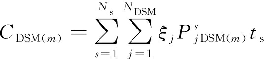 分别为时段s第m次模拟风机切除有功和负荷中断量;NDSM为采取DSM措施后的负荷节点数。