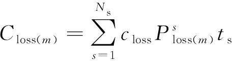 为时段s第m次模拟总负荷量;β为单位电量政府补贴系数;closs为单位网损成本;