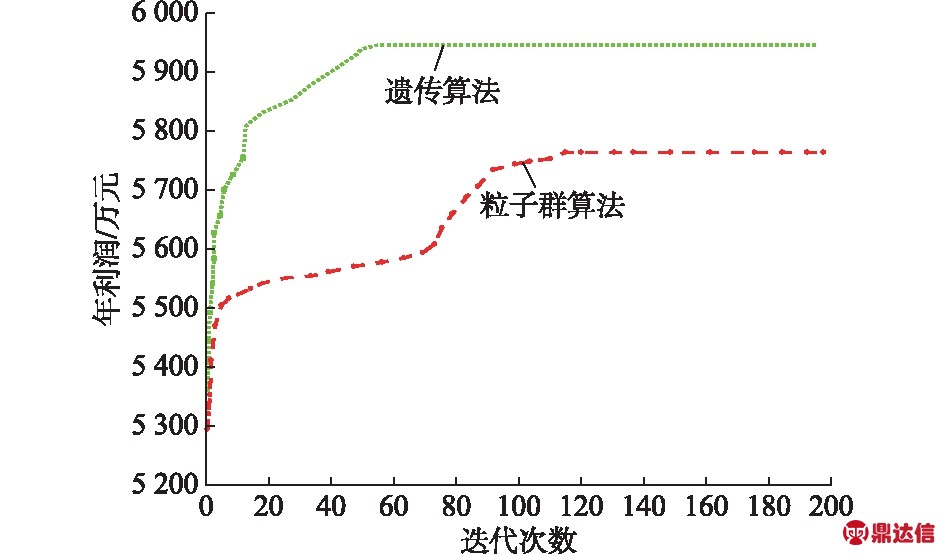 为了验证本文优化算法较其他算法的优势,同时考虑到下层目标函数值对年利润影响较小,下层求解算法便不进行性能比较,分别对本文上层遗传算法和其他算法的计算性能进行对比分析,比较结果见附录B表B1。