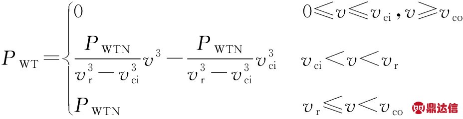 式中:PWT为风力发电功率;PWTN为风力发电额定功率;vci,vco,vr分别为切入风速、切出风速和额定风速。