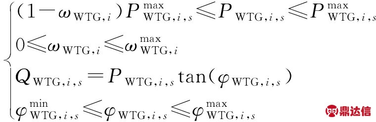 为安装在节点i的WTG在时段s的有功出力上限;ωWTG,i为安装在节点i的WTG的有功出力切除比例;