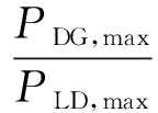 2)上层模型除目标函数本身约束,还包括以下约束条件:潮流等式约束,风电渗透率、风机安装台数不等式约束,静态安全指标约束。其中风电渗透率为风机总最大出力与负荷最大值的比值。其表达式为: