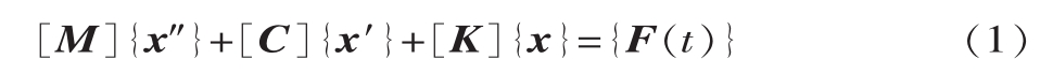式中:[M]为模型质量矩阵;{x″}为微元节点加速度矢量;[C]为模型阻尼矩阵;{x′}为微元节点速度矢量;[K]为模型刚度矩阵;{x}为微元节点位移矢量;F(t)为载荷矢量。
