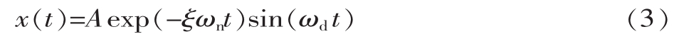 图3所示为多自由度系统,在碰撞过程中,运动的物体处于欠阻尼运动。对于欠阻尼情形,式(2)微分方程的解为: