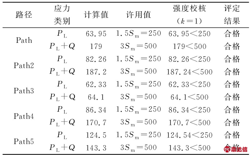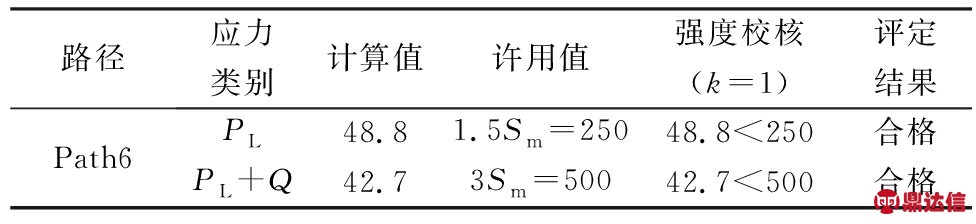 注:Path:选取的应力评定线位置;PL:一次局部薄膜应力;Q:二次应力;K:载荷组合系数。