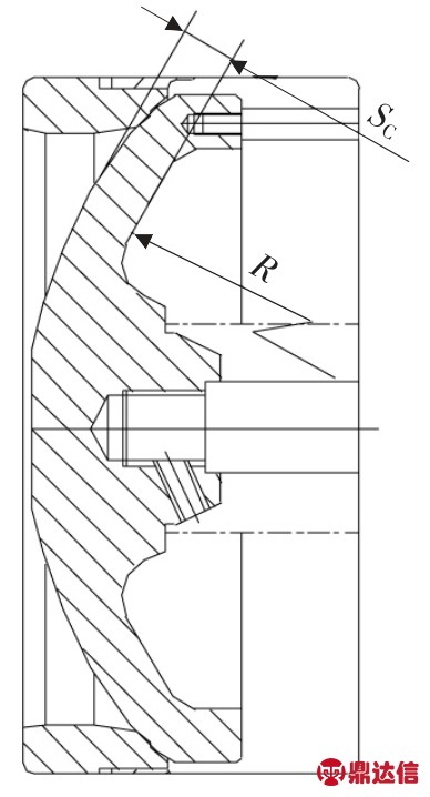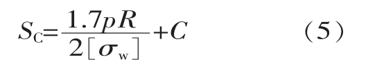 式中:R 为内球体半径;[σw]为许用弯曲应力;C 为考虑铸造偏差、工艺和介质腐蚀等因素而附加的余量。设计时,阀瓣实际厚度大于SC即可。