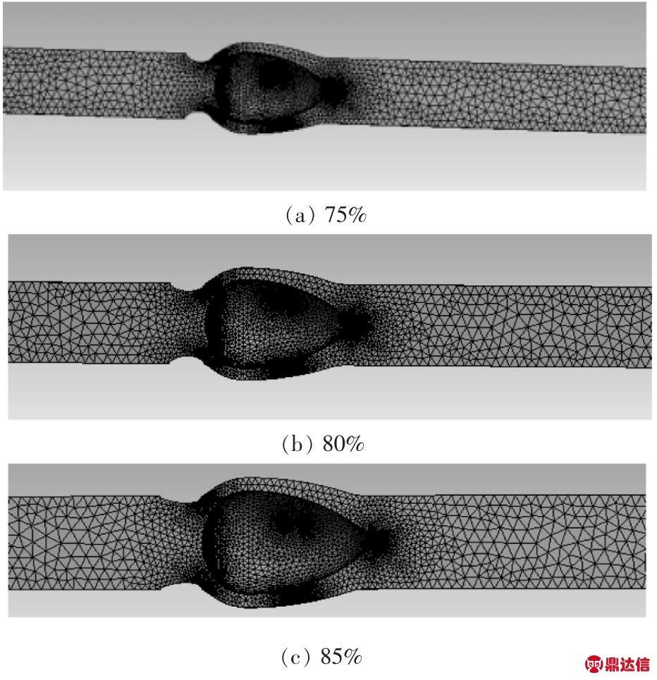图7 不同阀瓣喉部收缩因数全开时网格划分