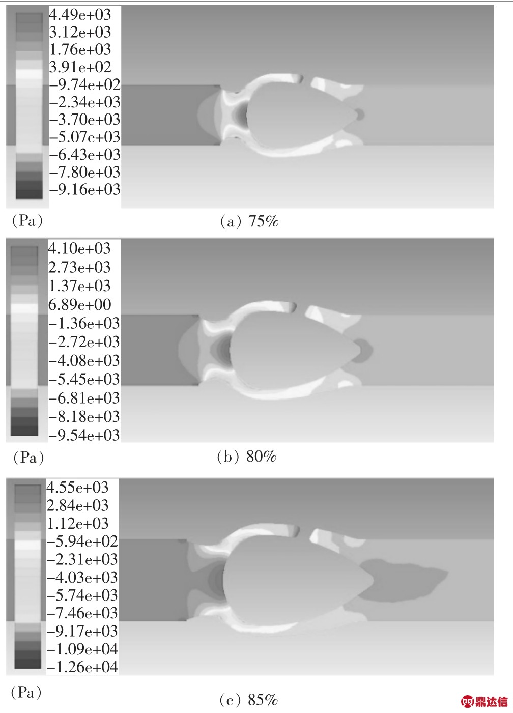 图8 不同阀瓣喉部收缩因数全开时压力分布