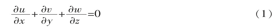 在迪卡尔坐标系下,快开缓闭轴流式止回阀内部流场的控制方程由连续方程和动量守恒运动方程组成[6]。