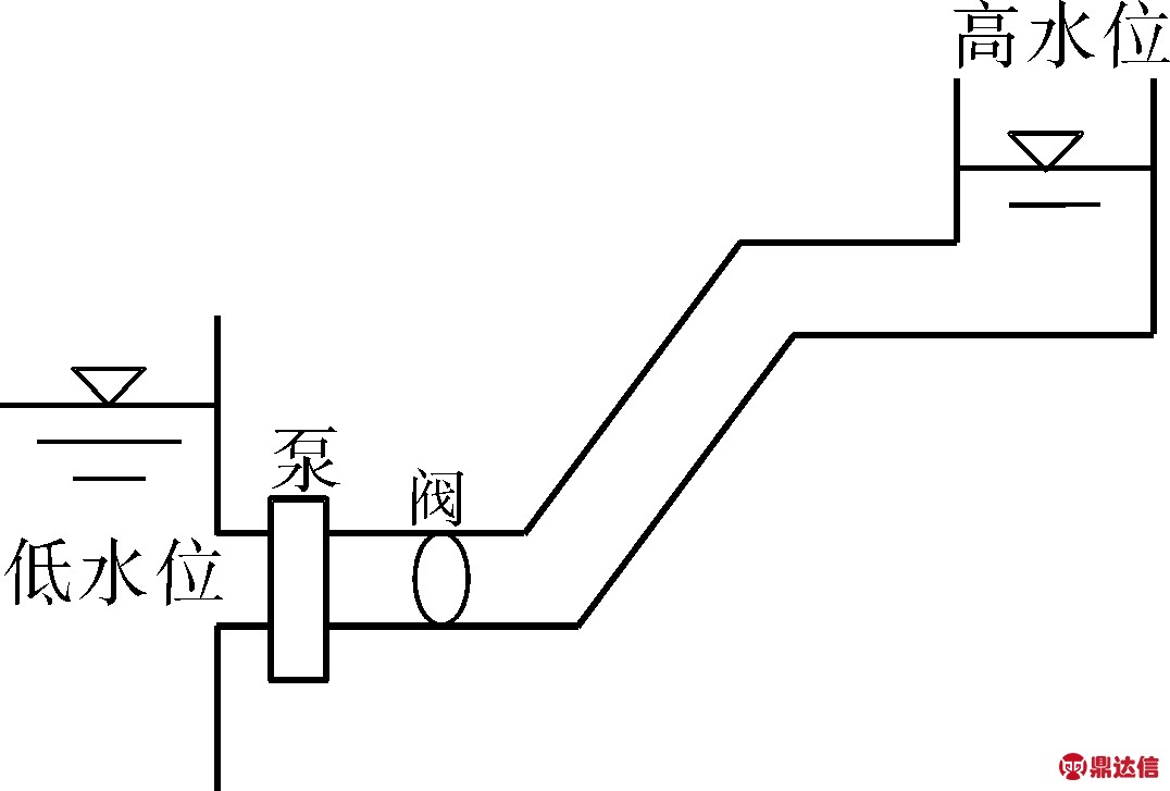在实际工况中,因某一设备故障停泵而导致的水锤事故相对较多,所以计算停泵水锤具有很大的实际应用意义,其物理模型如图6所示。