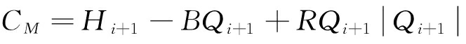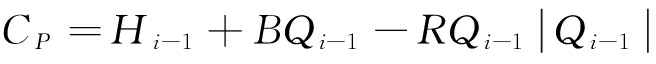 根据等速运行的离心泵特性曲线和水锤特征线方程可以得到离心泵流量计算方程[34~39],即: