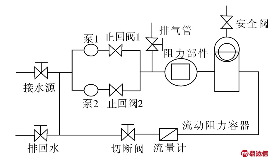 图1为动力装置实验系统简图,为增加可靠性,设置了2台泵。当1号泵停闭后开启2号泵时,1号止回阀应可靠关闭,否则部分冷却剂会在1号泵和2号泵之间形成小循环,防止造成事故。