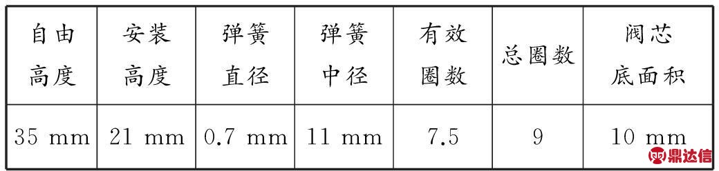 为了减小列车管压缩空气通过滤尘止回阀后的压降,需要减小序12 压紧弹簧的预紧力,按照国外制动机设计,停放制动需要450 kPa压力才能完全缓解,因此压紧弹簧的预紧力选择50 kPa,拟设计弹簧参数见表1。