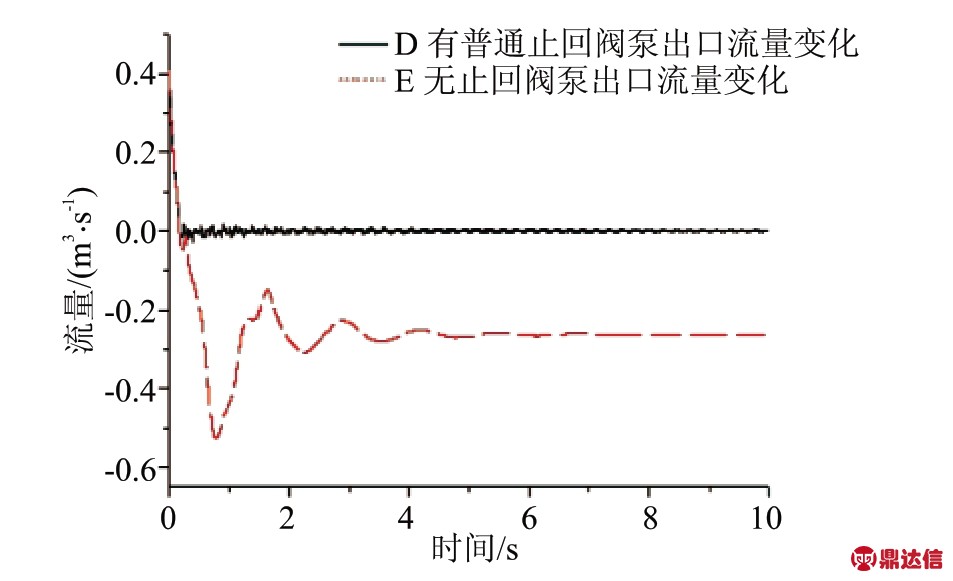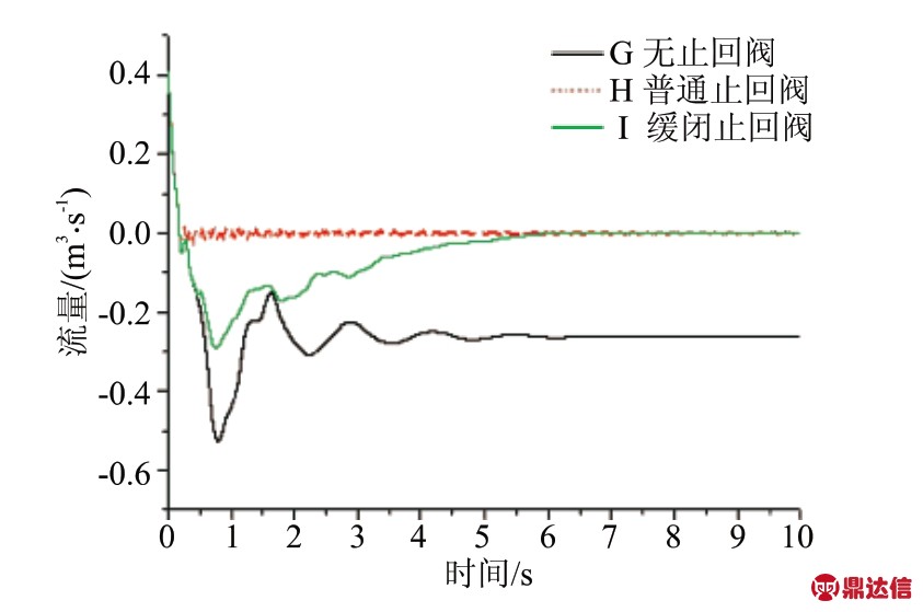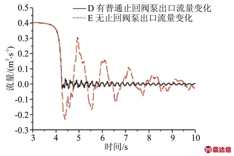 3.1 突然停泵时有普通止回阀和无止回阀对水锤的影响