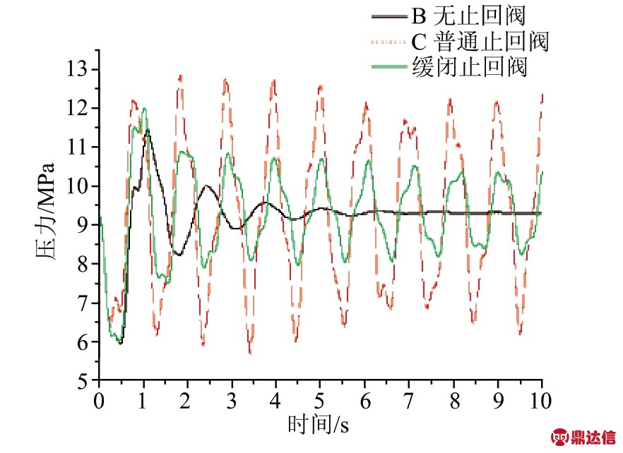Fig.2 The outlet pressure of Check valve changes when pump stop