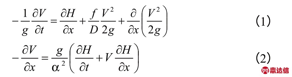 水锤基本方程是水力过程分析和计算的基础,它包含以微分方程式表示的运动方程和连续性方程[9]。运动方程和连续性方程可表示为。
