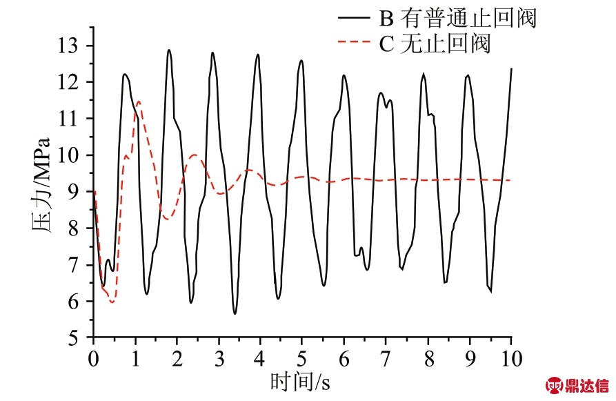 图2 停泵时止回阀出口压力变化